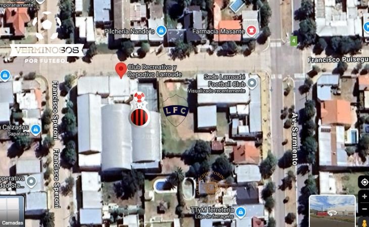 Sedes do Centro Recreativo y Deportivo Larroude (esq) e do Larroude Foot Ball Club (dir) são vizinhas (Foto: Google Maps)